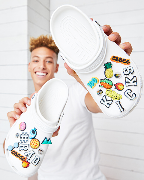 EASY AND FUN DIY TO DO. It was designed to be flexible enough to do this. If the Jibbitz will not push through easily try pushing the black portion through sideways. This method can be a little pricier than the Shrinky Dink method but it takes about 5 seconds. Httpsamznto33bAY8hJibbitz Back Pieces clear. Inserting Instructions Simply push them in at a 45 degree in the desired hole of the shoe. Locate the holes in your Crocs and insert the Jibbitz in a 45-degree position.