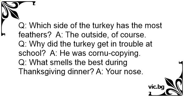 5 Star Boutique Small Luxury Hotels. Guest Name Guest Email. Turkey Feathers Riddle Meme. Posted Nov 24 2015 by Aastha Joshi. Which side of a turkey has the most feathers. What smells the best during Thanksgiving dinner. What side do chickens have the most feathers on. To hatchet Why did the police arrest the turkey. A Thanksgiving turkey riddle is.